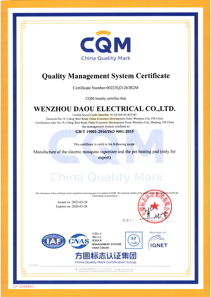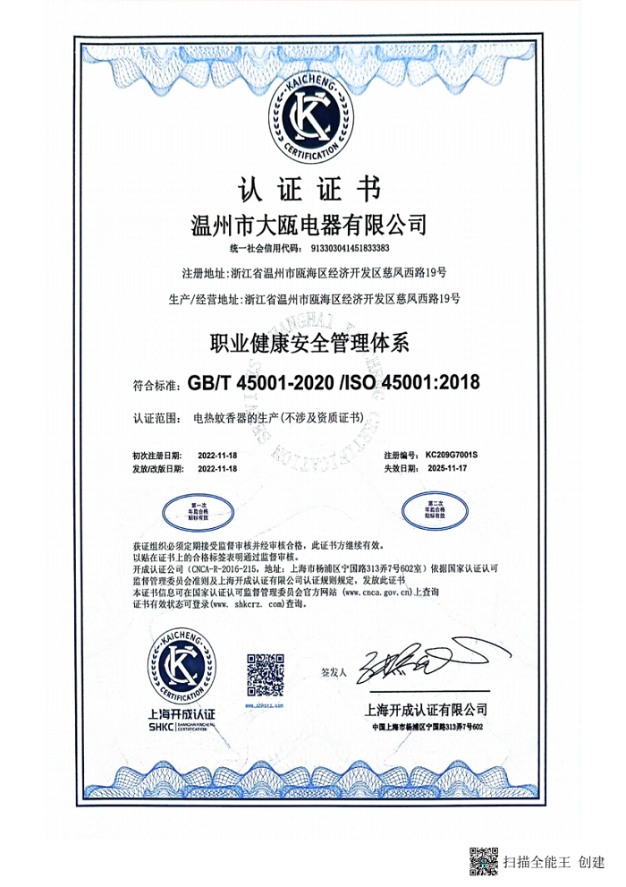 溫州市大甌電器有限公司(以下簡稱大甌公司)是集研發(fā)、制造為一體的日化電器專業生產制造商。 秉承“以人為本,以質取勝”的經營理念,三十余載櫛風沐雨,踐行“成就客戶、價值為本、誠信務實、追求卓越”的核心價值觀。大甌公司堅持以產研一體化的經營模式與差異化的競爭戰(zhàn)略為基點,持續(xù)推出細分市場上的多種類產品,豐富產品矩陣,滿足消費者多樣化需求,助力新型驅蚊行業高速發(fā)展。